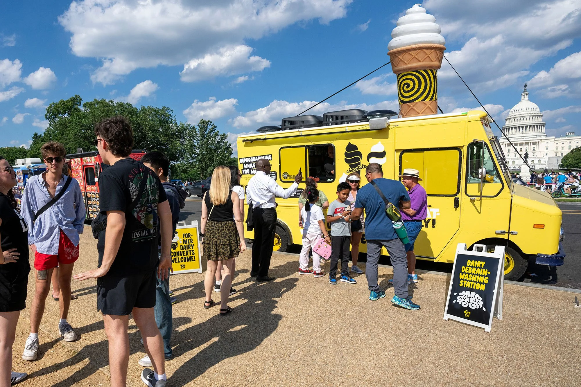 Every year the International Dairy Farmers Association hosts an ice cream party for the political folks in Washington on the lawn in front of our nation’s capitol building. It’s the perfect opportunity to show up and chat about the impact of dairy on the environment—right?